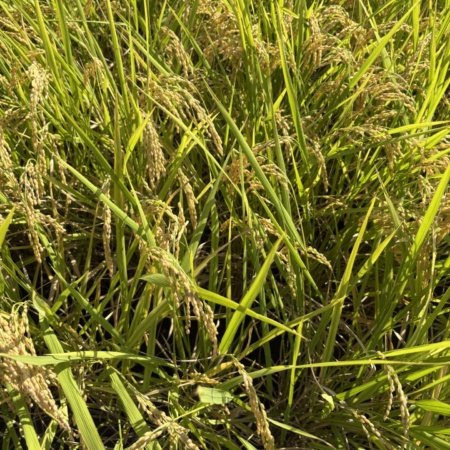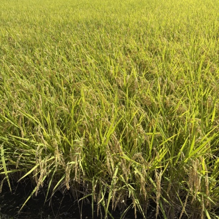 ケイ酸入一発肥料を使用された収穫直前のヒノヒカリ。