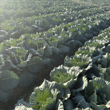 結球期のキャベツ、葉肉が厚くとても硬い出来。